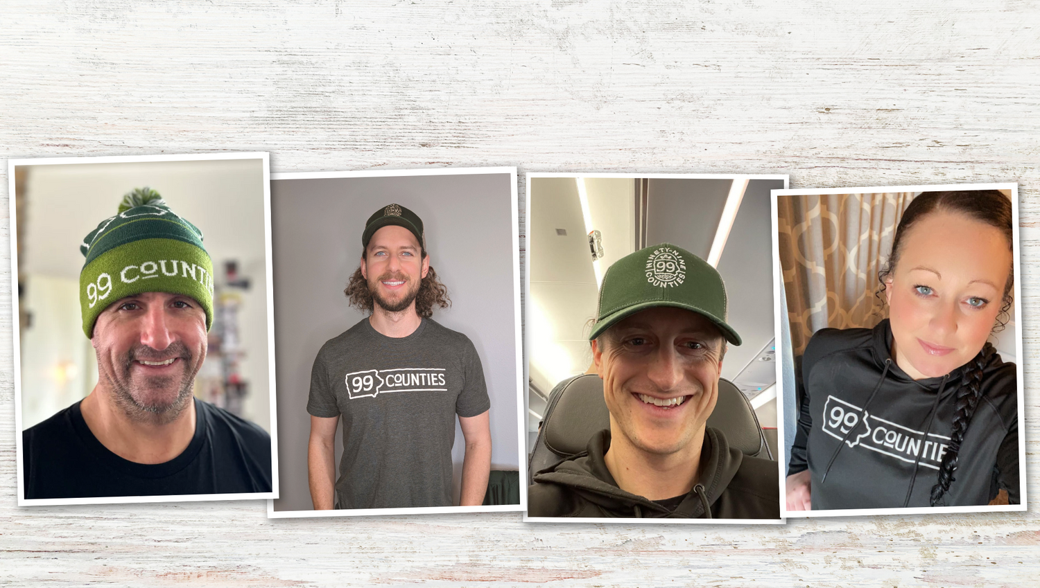 Show your support by sporting 99 Counties hats, sweaters, & T-shirts!