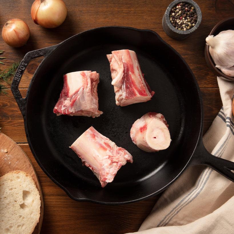 Rich in collagen, vitamins, and minerals, Beef Marrow Bones are nutrient dense and full of flavor. Decadent roasted and served on toast or used to as the flavorful base of of your favorite beef-forward soup.